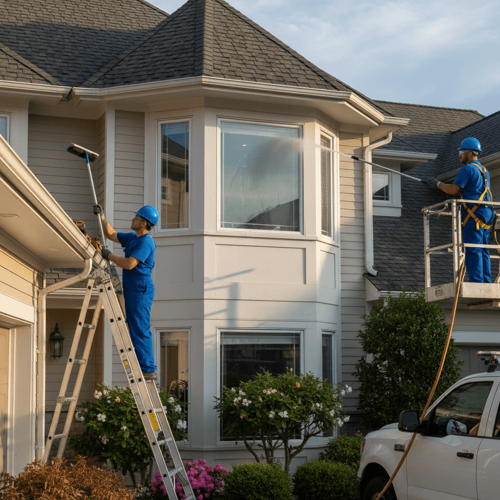Professional window cleaning Vaughan technicians working on residential property exterior